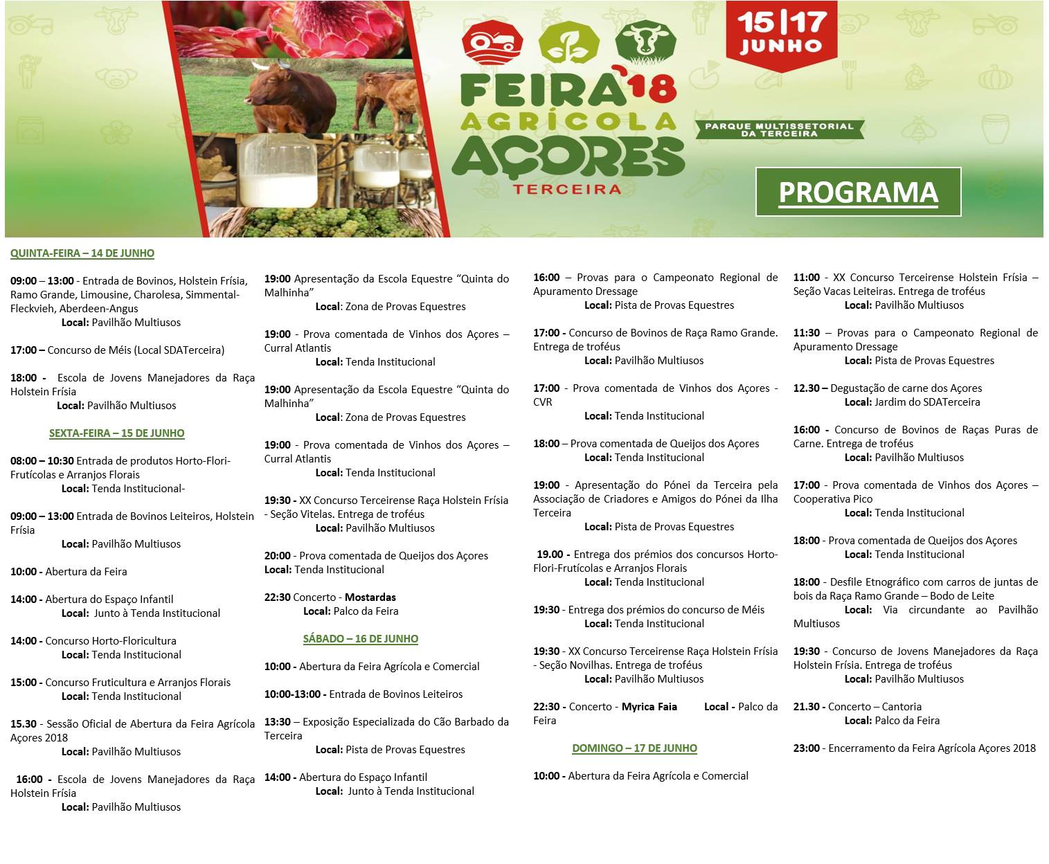 Confira a baixo o resto do programa da Feira Agrícola Açores.